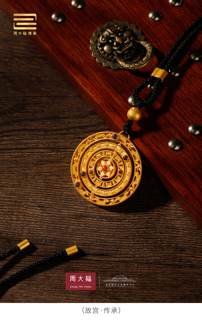 周大福傳承以鑄造、鏨刻、錘揲、花絲、鑲嵌、燒藍、雕漆、玉雕、景泰藍九大黃金工藝為依托,以千年前的符號、圖案、文化為設(shè)計元素,融入中華優(yōu)秀文明,延伸出五大子系列。