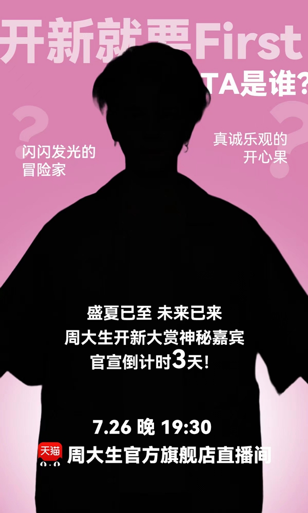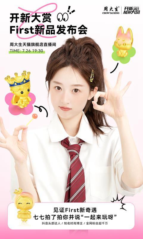 7月26日晚19點(diǎn)30分,周大生“開新就要FIRST“新品直播發(fā)布會(huì)將在天貓周大生官方旗艦店直播間開啟,諸多亮點(diǎn)不容錯(cuò)過(guò)!
