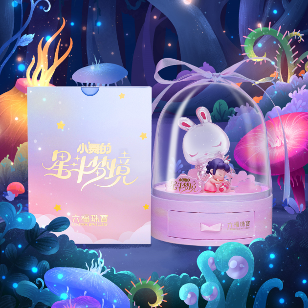 騰訊視頻《斗羅大陸》動畫自推出至今,總播放已破600億,IP矩陣覆蓋用戶達6億,2021及2022年更連續被評為新華·文化產業價值綜合榜TOP1,成為當之無愧的國漫頂流IP。小舞是誰?她是《斗羅大陸》動畫經典人物元素,以每個人身邊的好朋友,性格極致樂觀,樂于為友的人設,圈粉無數動畫愛好者。有別于動畫里的形象,這次六福珠寶與《斗羅大陸》動畫的聯名禮盒,為大家呈現幼年寶寶舞的模樣,連同她背后的故事:在夢境里,小舞回到了童年,寶寶舞帶著兔子,在星斗大森林里開啟奇遇之旅,帶大家發掘屬于童年的溫暖小確幸。此番聯名不止聯合創作這么簡單,實際有在洞察年輕用戶的喜好與心理訴求,在充斥著焦慮、郁悶的環境下,大家都迫切想找到一個情緒投靠點,寶寶舞的出現,她傳遞的溫暖、夢幻、陪伴,無疑是一個治愈人心的存在。